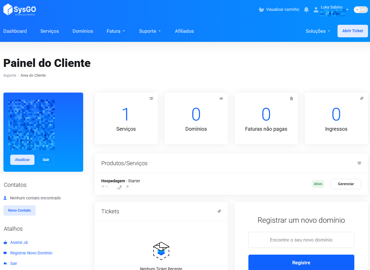 Dashboard da Área do Cliente