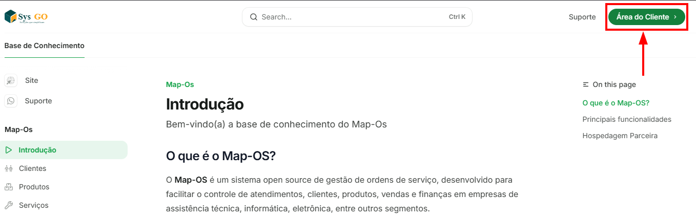 Botão de acesso à Área do Cliente - Central de Ajuda