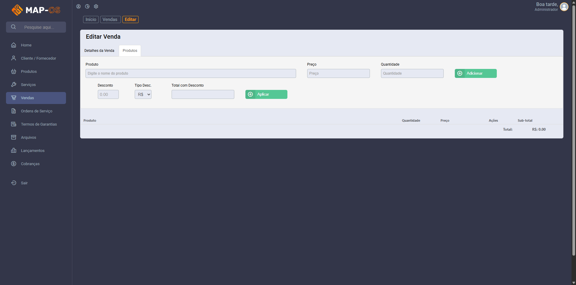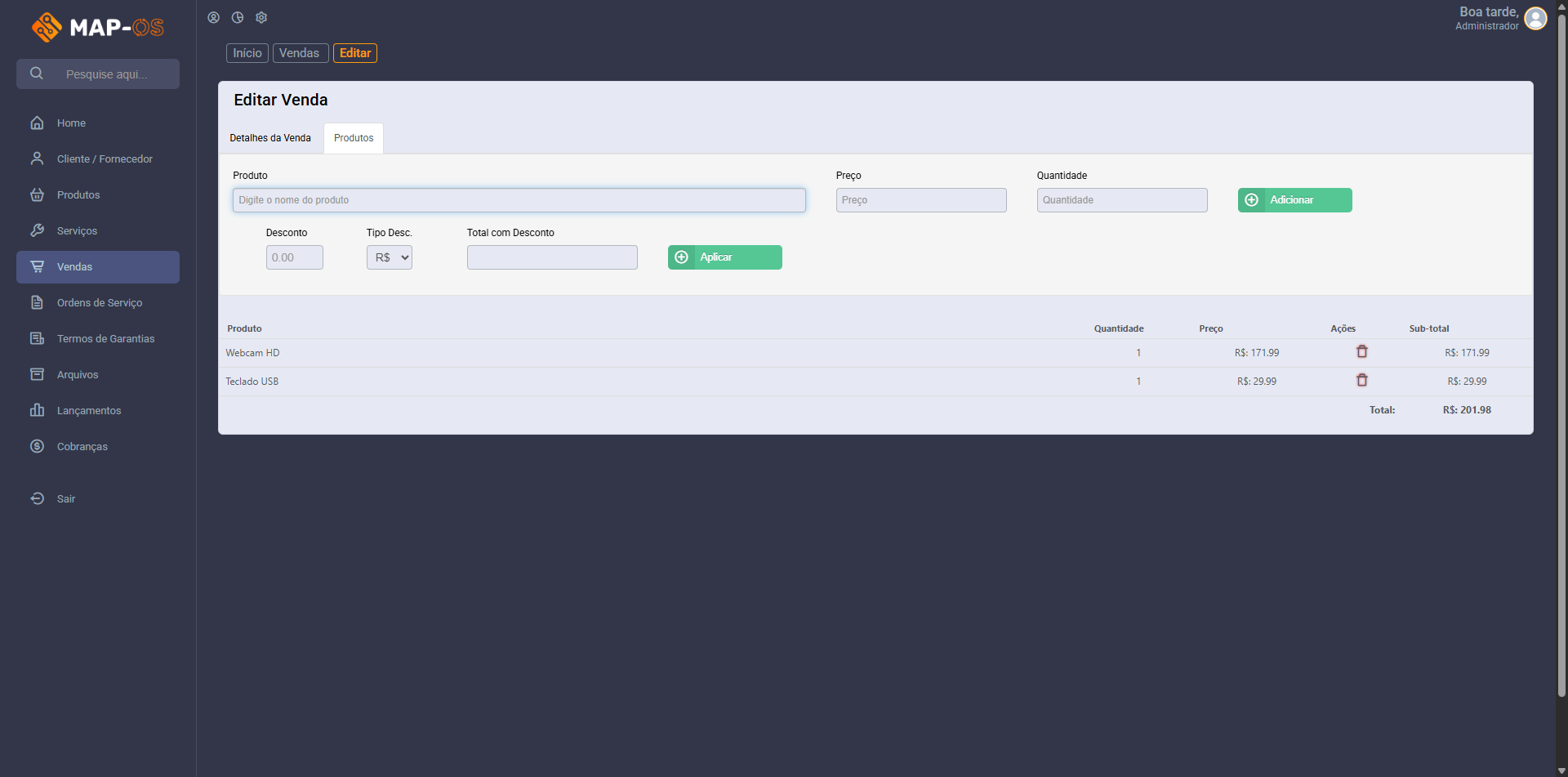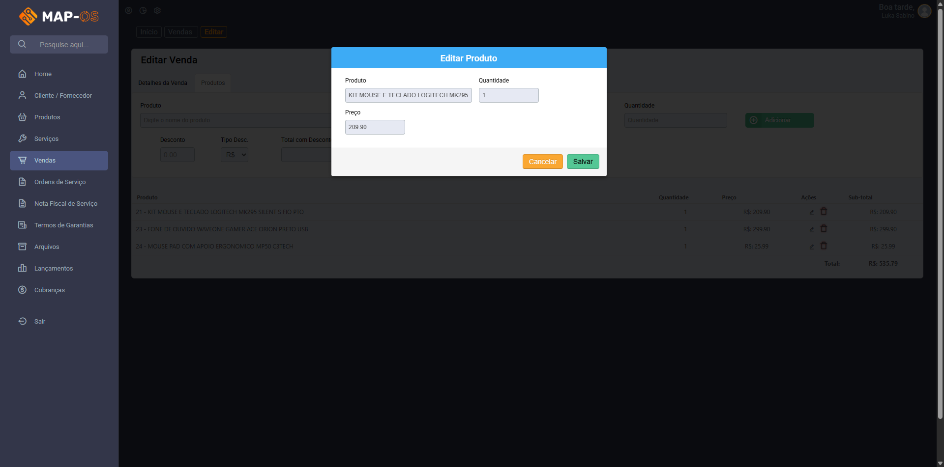 Para usuários do Map-Os Plus, é possível também, alterar a quantidade e preço do produto já adicionado.